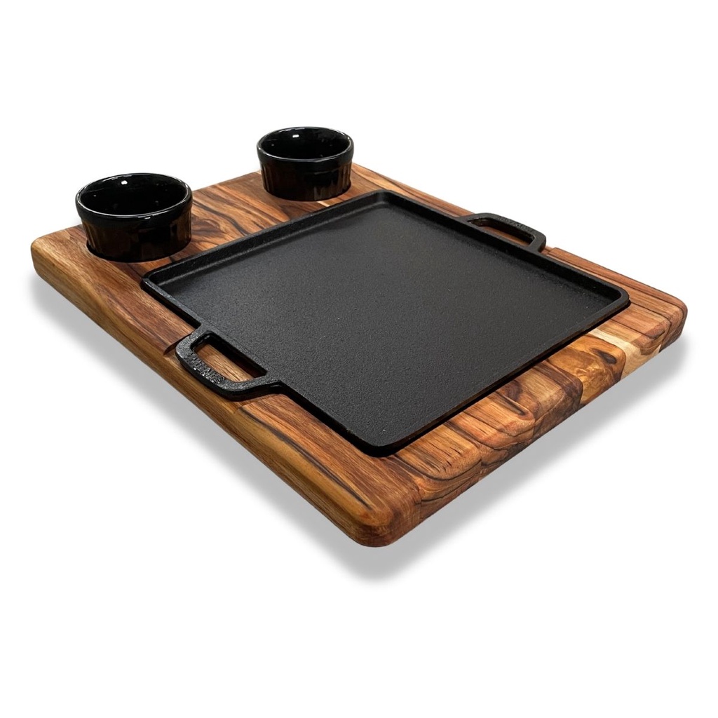 Tábua Churrasco De Madeira Para Carne Com Chapa E Cumbucas