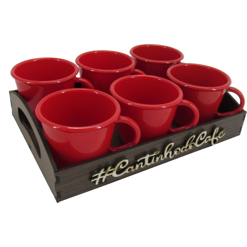 Kit 6 Xícaras Acrílica Vermelha Com Bandeja Cantinho do Café