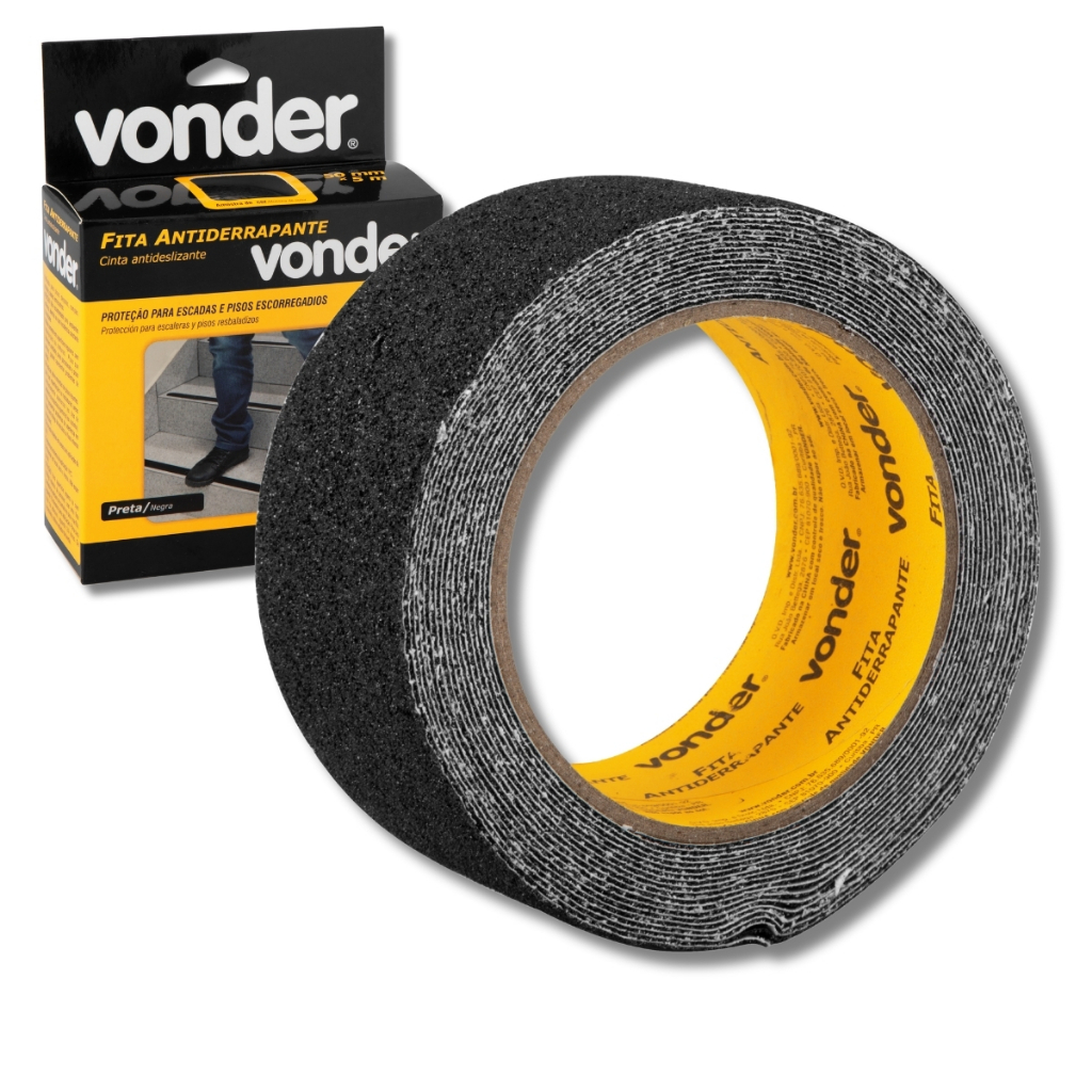 Fita Antiderrapante 5m e 15m Vonder Preta Area Interna Piso Escada Rampas Degraus