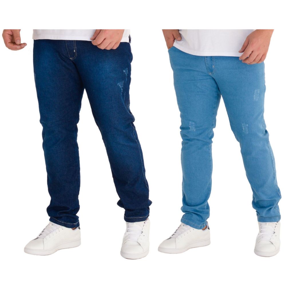 Kit 2 Calças Jeans Skinny Masculina C/ Lycra Plus Size Tamanho Grande Casual