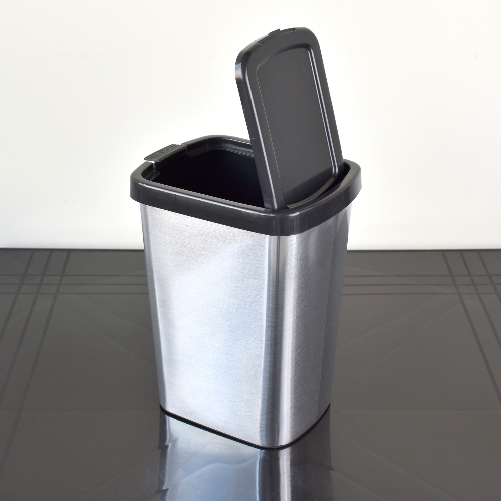 Lixeira Cesto Tipo Inox Com Tampa Click 9 Litros Label Retangular Plástico Automatica Prata Banheiro Pia Cozinha Quarto Escritório Lixo 9l Metalizado Plástica Promoção
