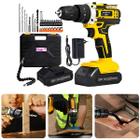 Parafusadeira Furadeira impacto elétrica furadeira a bateria Furadeira Sem Fio 21v 2 Baterias 24 Acessórios