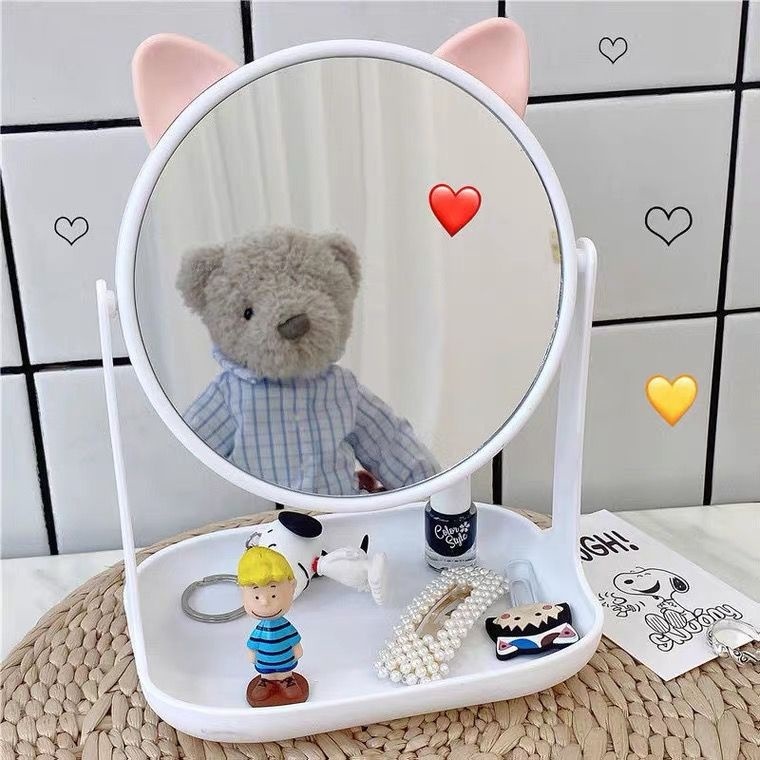 Lela Espelho De Mesa Super Fofo Modelo Com Orelinha Gato Espelho Para Maquiagem e Skincare