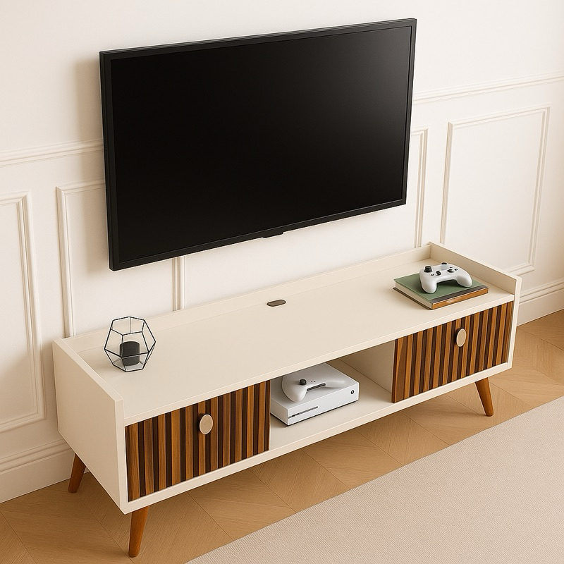 Rack Bancada Flow 2 Portas Com Pés de Madeira Maciça