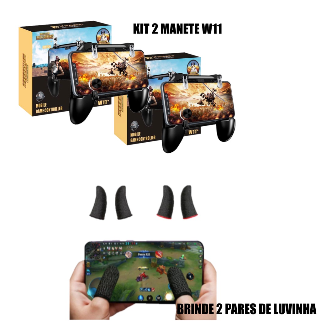 Kit 2 Manete Gamepad W11 Controle Para Celular Pubg Free Fire CoD + Brinde 2 Pares de Luvinha