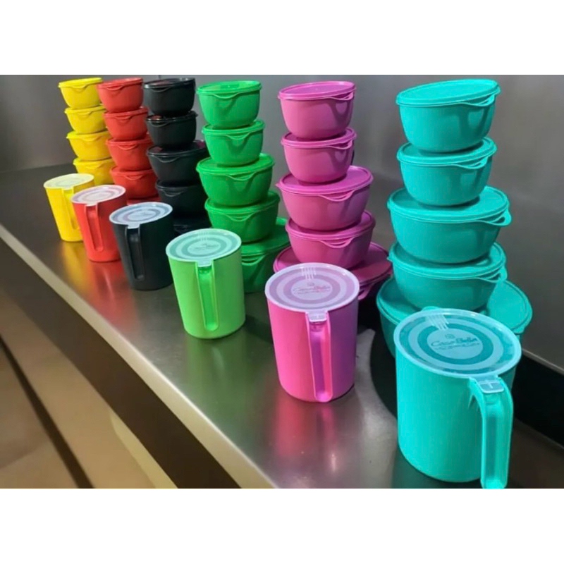 Kit 5 Potes com jarra Plastico Redondos Marmitas Grandes Bowl Livre Bpa