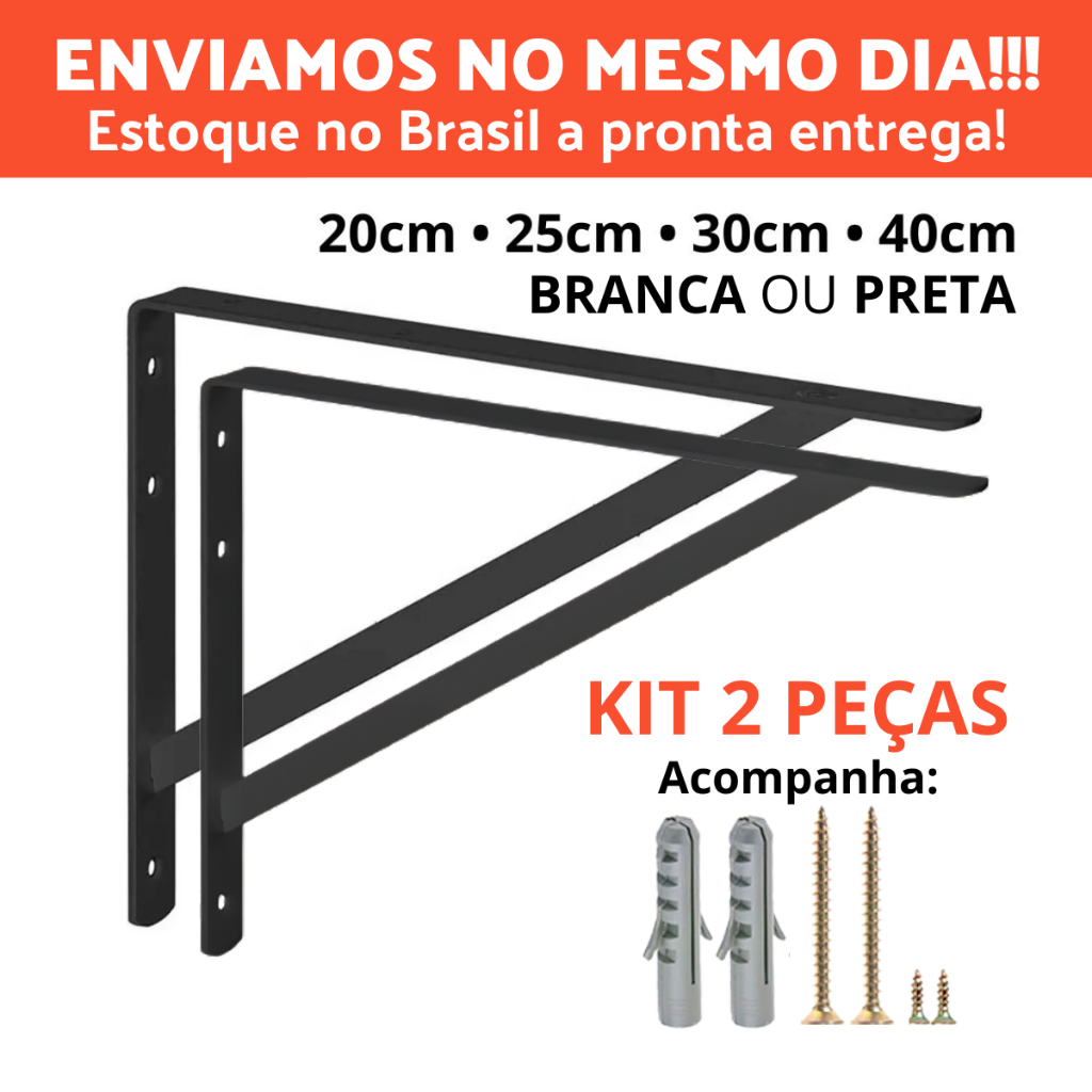 Kit 2 Mãos Francesas 20cm 25cm 30cm 40cm Suporte De Prateleira Tampo De Mesa E Bancada 2 Peças