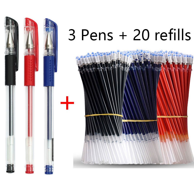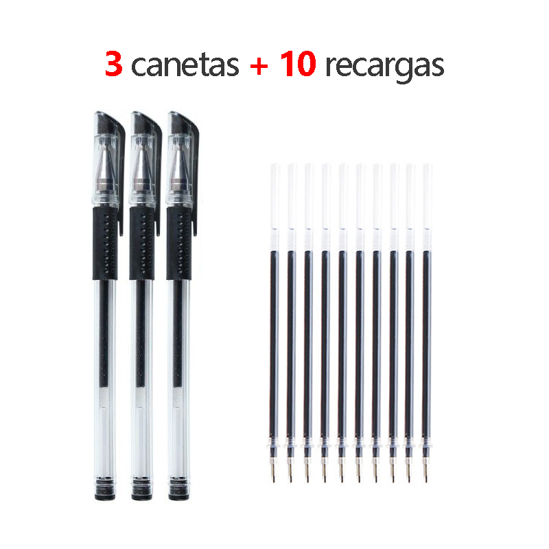 3 Canetas Gel + 10 Recargas 0,5 mm Caneta Esferográfica Preta Azul Vermelha Da Escola Papelaria