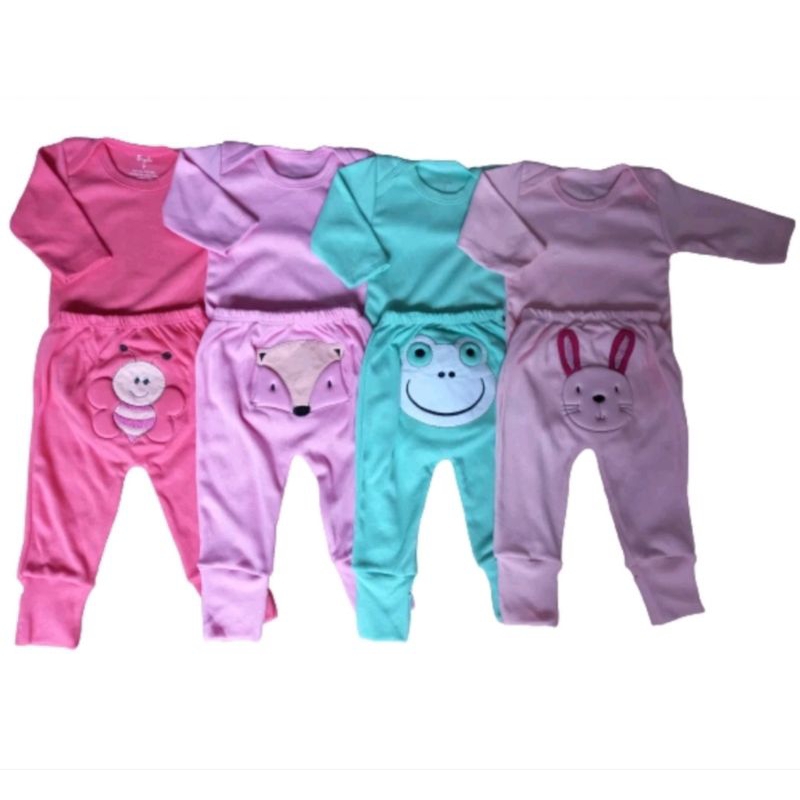 Conjunto de Bebê Body Manga Curta + Calça Mijão Com Vira Pé Kit C/ 2 Peças Menina e Menino100% Algodão ( P M G)