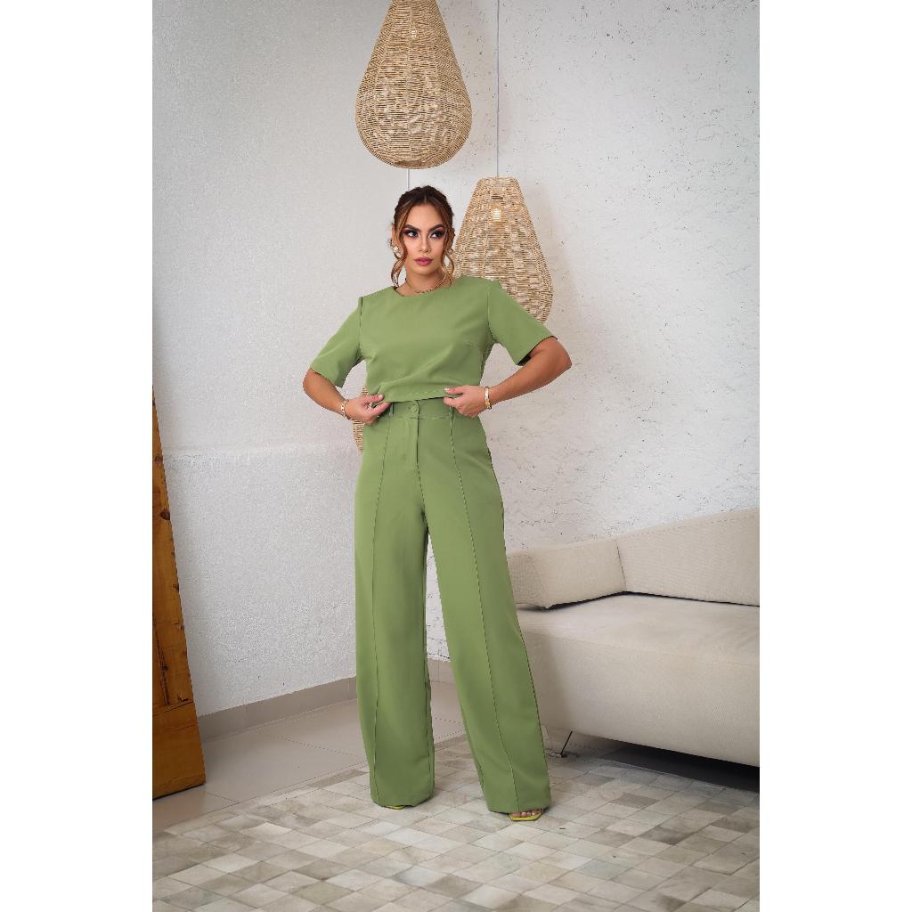 Conjunto Feminino Calça Pantalona e Blusa Feminina Estilosa Moda Casual Social Alfaiataria Premium