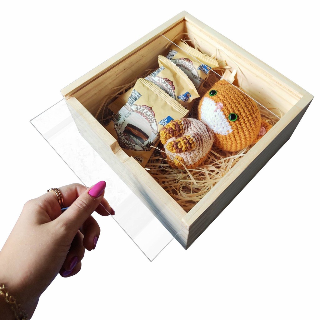 Caixa Estojo em Madeira de Pinus 10mm com Tampa em PS Cristal