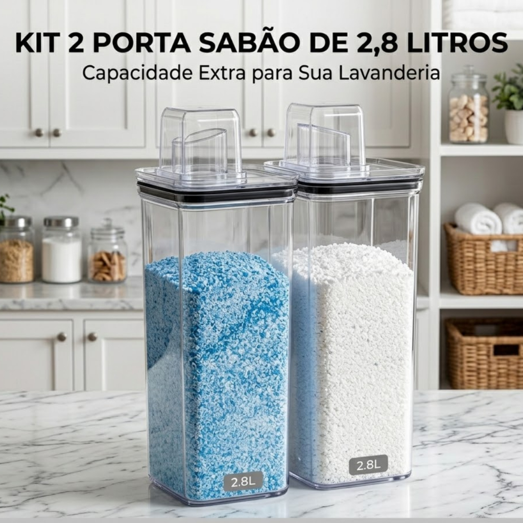 Kit Dispenser Organizador de Sabão em Pó Para Lavanderia 2,8 litros Acrílico Porta Sabão