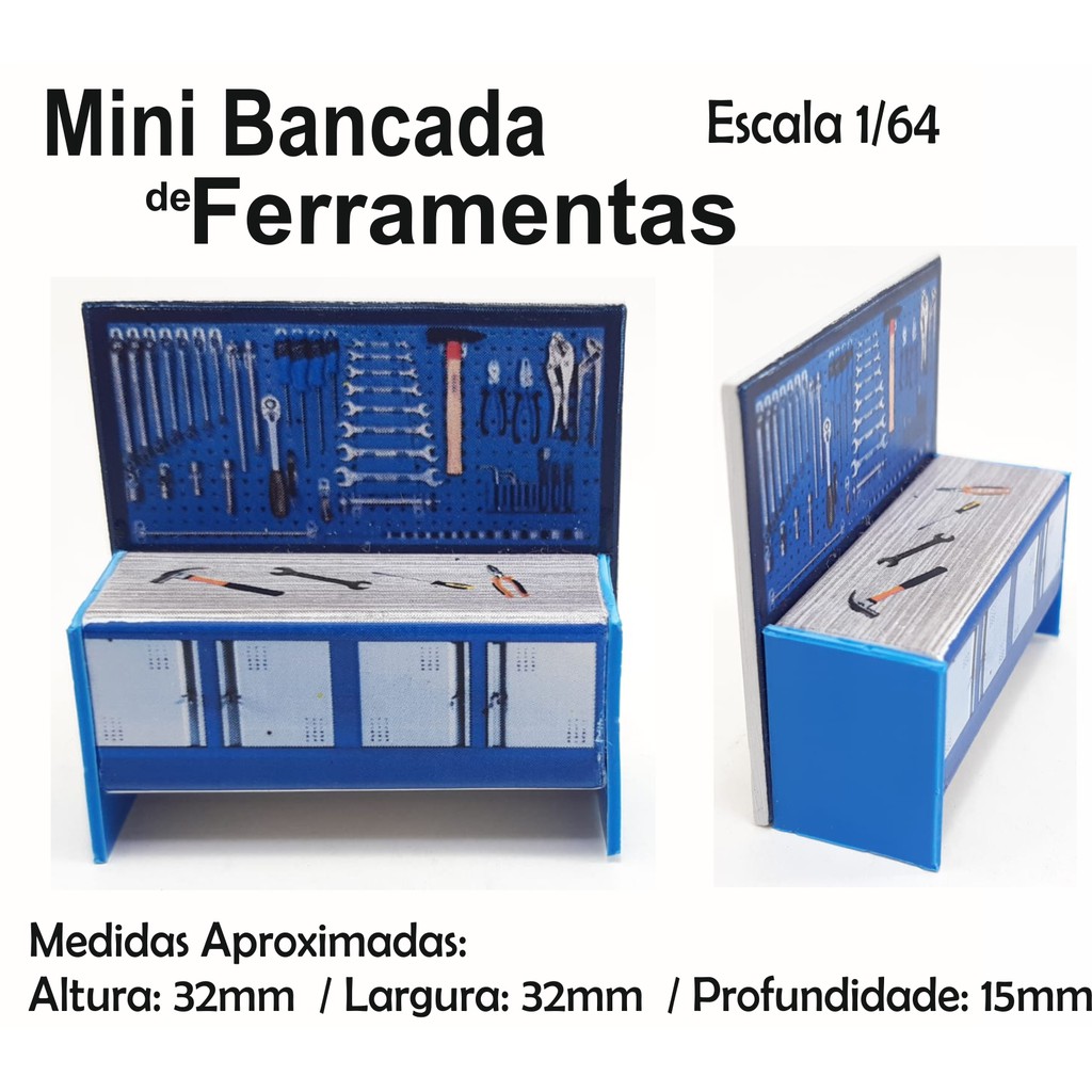 Mini bancada de ferramentas decorativa para dioramas e maquetes na escala 1/64