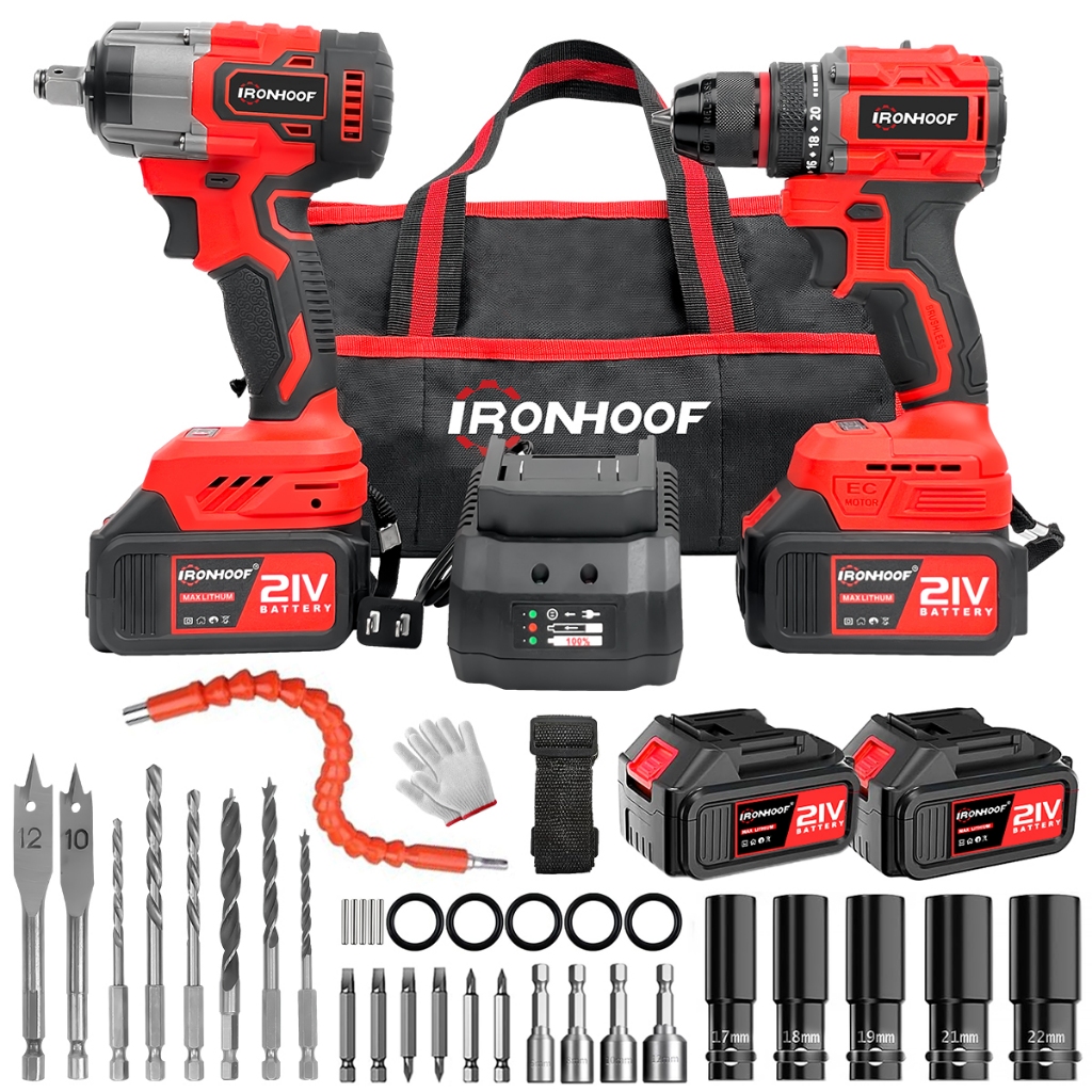 kit 2 Chave de Impacto Potente e Furadeira Parafusadeira A Bateria Impacto 21V Brushless com Acessórios