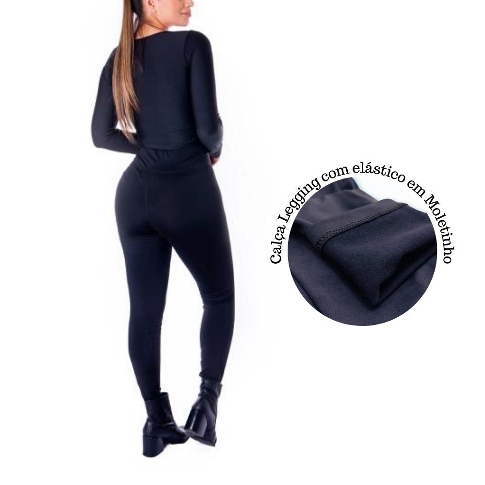 CALÇA FEMININA FLANELADA CINTURA ALTA SUPLEX LEGGING COM DETALHE DE CIRRÉ MODA INVERNO