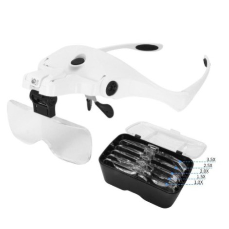 Lupa de Cabeça Óculos 2 Led 5 Lentes Profissional Zoom 3,5x