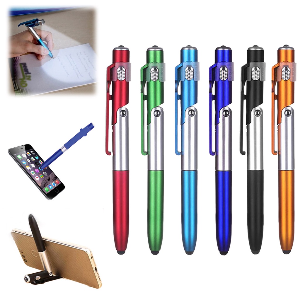 Caneta Esferográfica 4 Em 1 Multifuncional Dobrável Luz LED Suporte Para Telefone Celular Escrita Estudante Material De Escritório Escolar