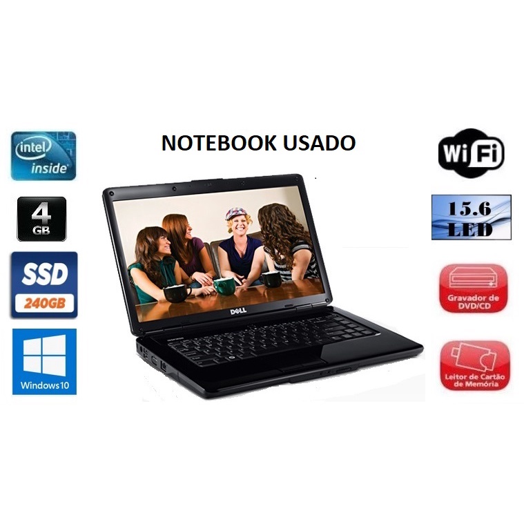 Notebook Dell Inspiron 1545 Pentium Dual-Core 4GB Ram 240GB SSD Tela LED 15,6 Polegadas Windows 10 Pro