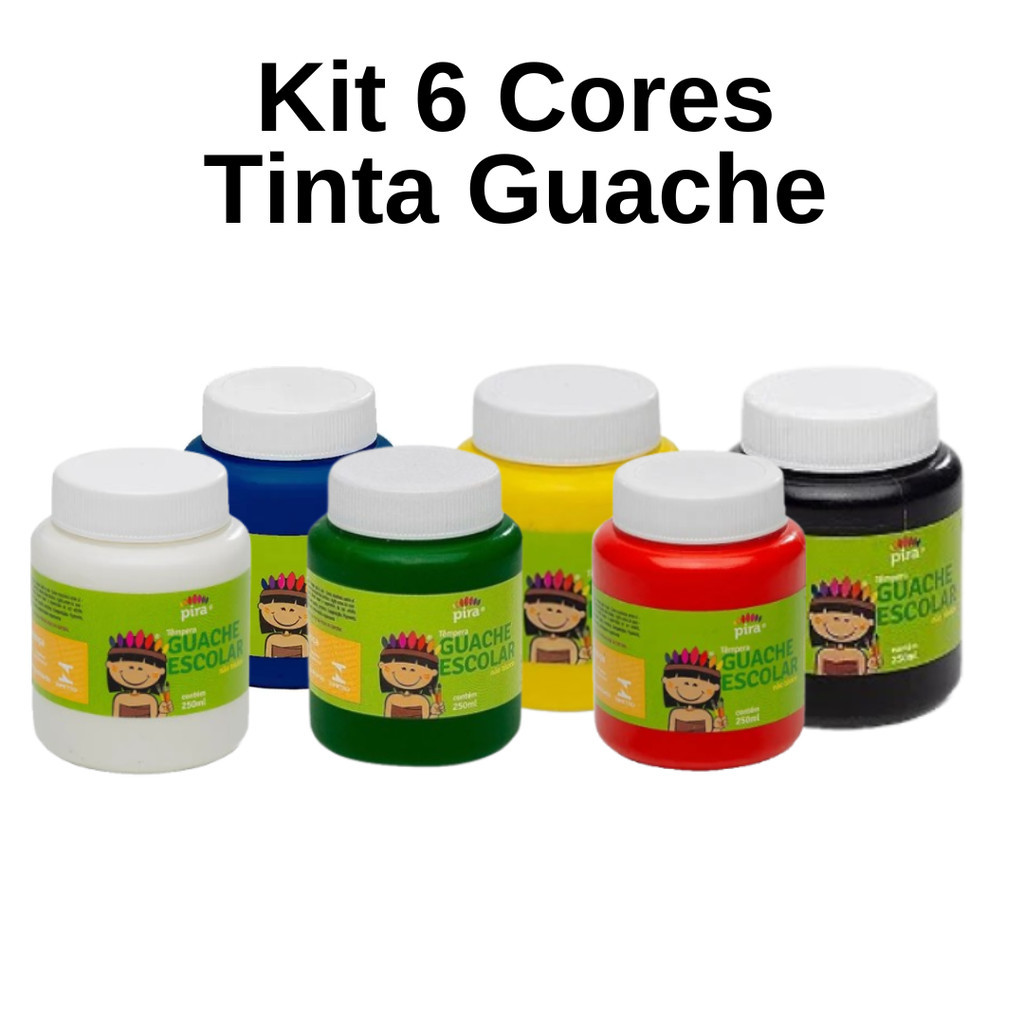 Kit 6 Tintas Guache Cores Variadas 250ml Piratininga