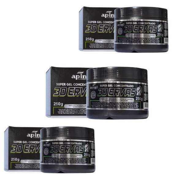 Kit 3 Pomada Super Gel 30 Ervas Massageador Concentrado 250 Gr- Apinil