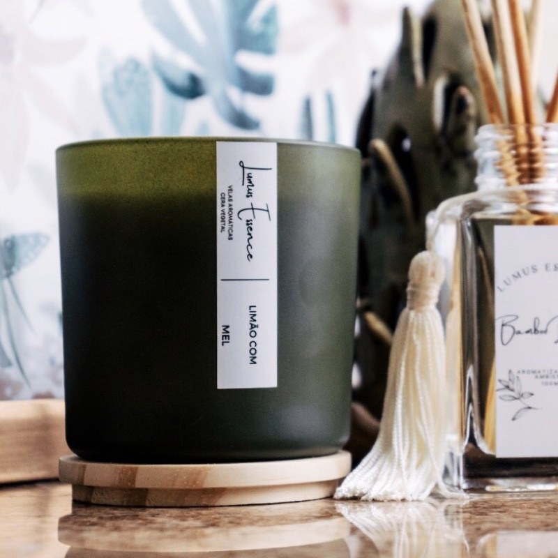 Vela Aromática Limão com Mel pavio de Madeira e Pote de Vidro Fosco