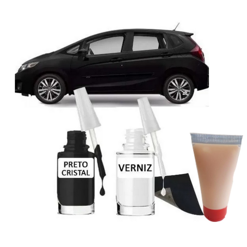 Tinta Tira Risco Automotivo Para Honda Fit Preto 10ml + Cera De Polir 15ml Para Polimento