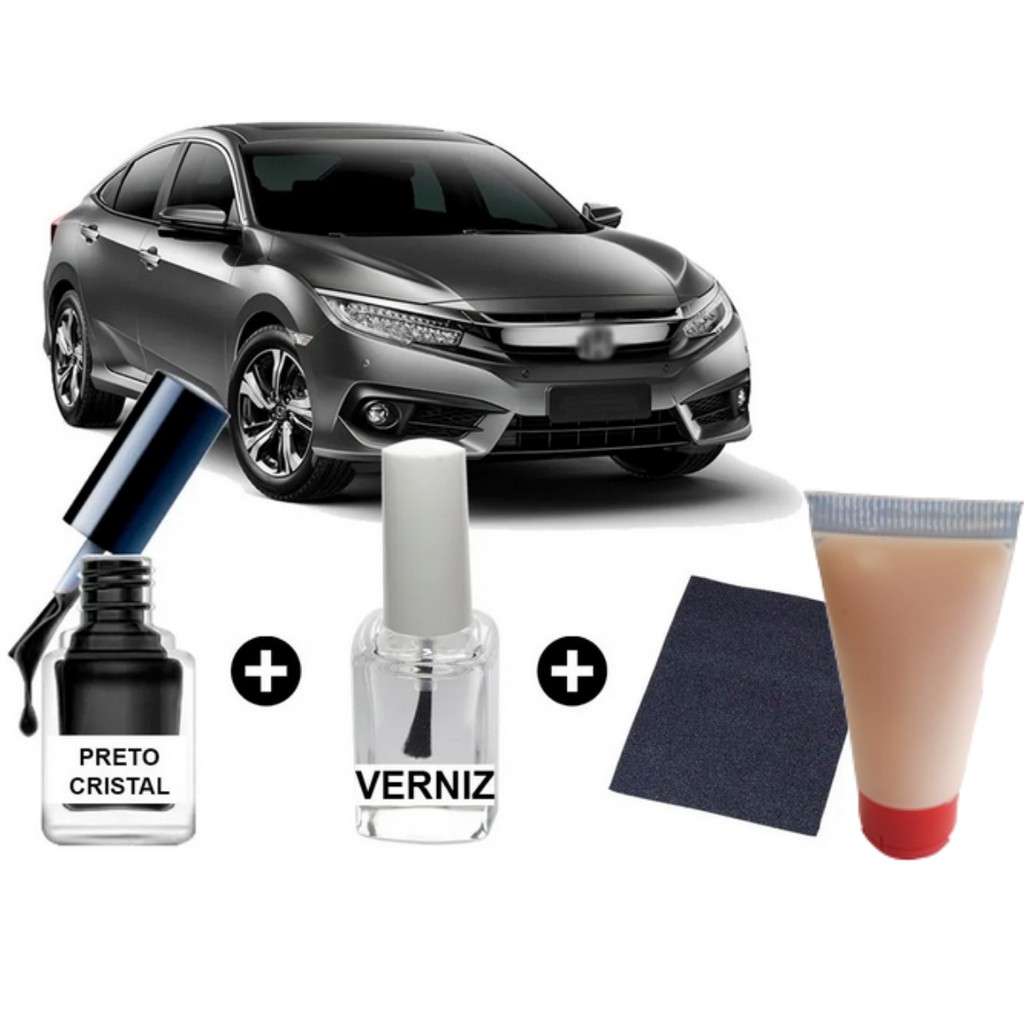 Tinta Tira Risco Automotivo Honda Civic Preto Cristal 10ml + Cera De Polir 15ml Para Polimento