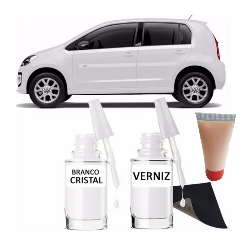 Tinta Tira Risco Automotivo Volkswagen UP Branco 10ml + Cera De Polir 15ml Para Polimento