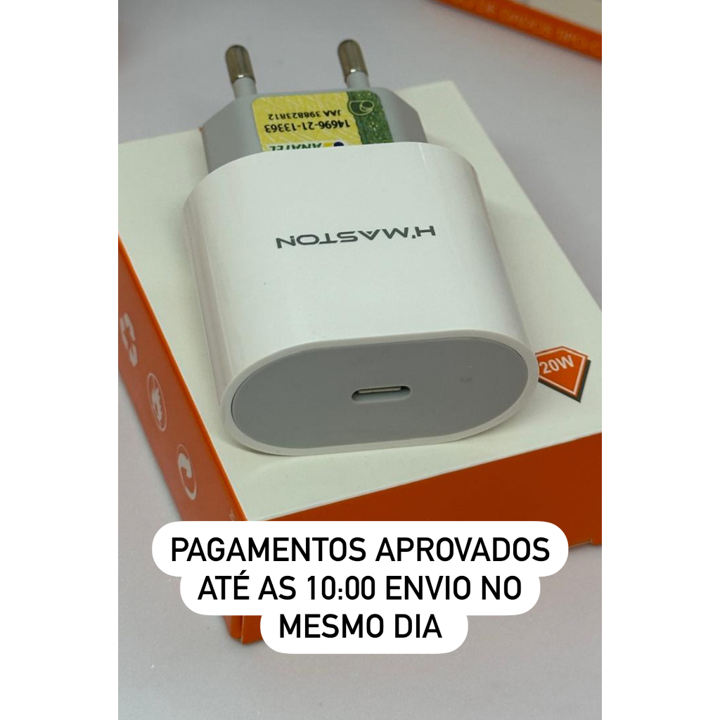 Carregador Fonte Adaptador de Energia Tipo-C de Carregamento Rápido 20W H'Maston Para Iphone + Cabo de Carregamneto Rápido e Dados USB-C