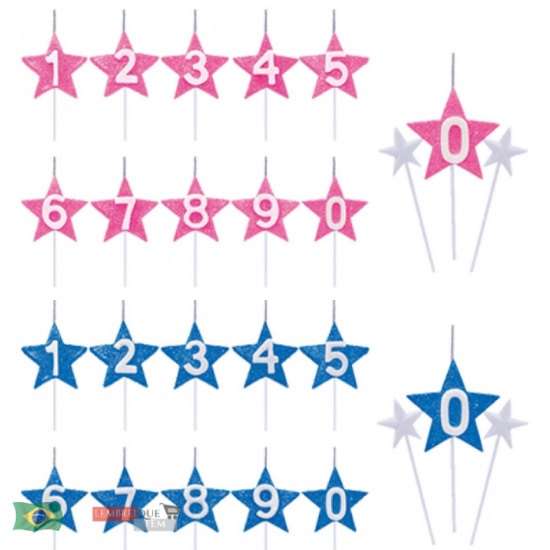 vela velinha de aniversário de aniversario estrela com numero rosa azul - vela para festa