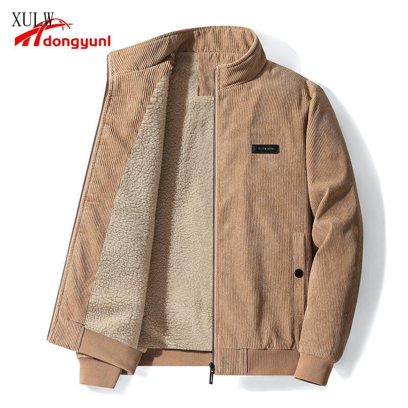 Jaqueta de Veludo Masculina de Inverno Nova, Forrada com Fleece Grosso, Moda com Gola Alta, Jaquetas Casuais de Lã de Co