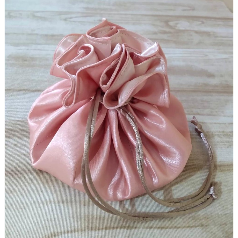 Porta joias/bijuterias/para bolsa/formato de saquinho/tecido cetim/kit 2 unidades