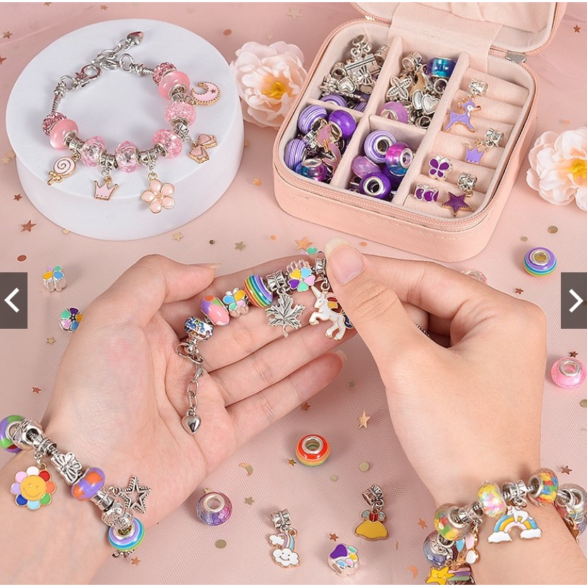 Porta Joias com Kit de fabricação de pulseira com pingentes ,Pandora com Berloques e Pingentes conjunto de joias para meninas