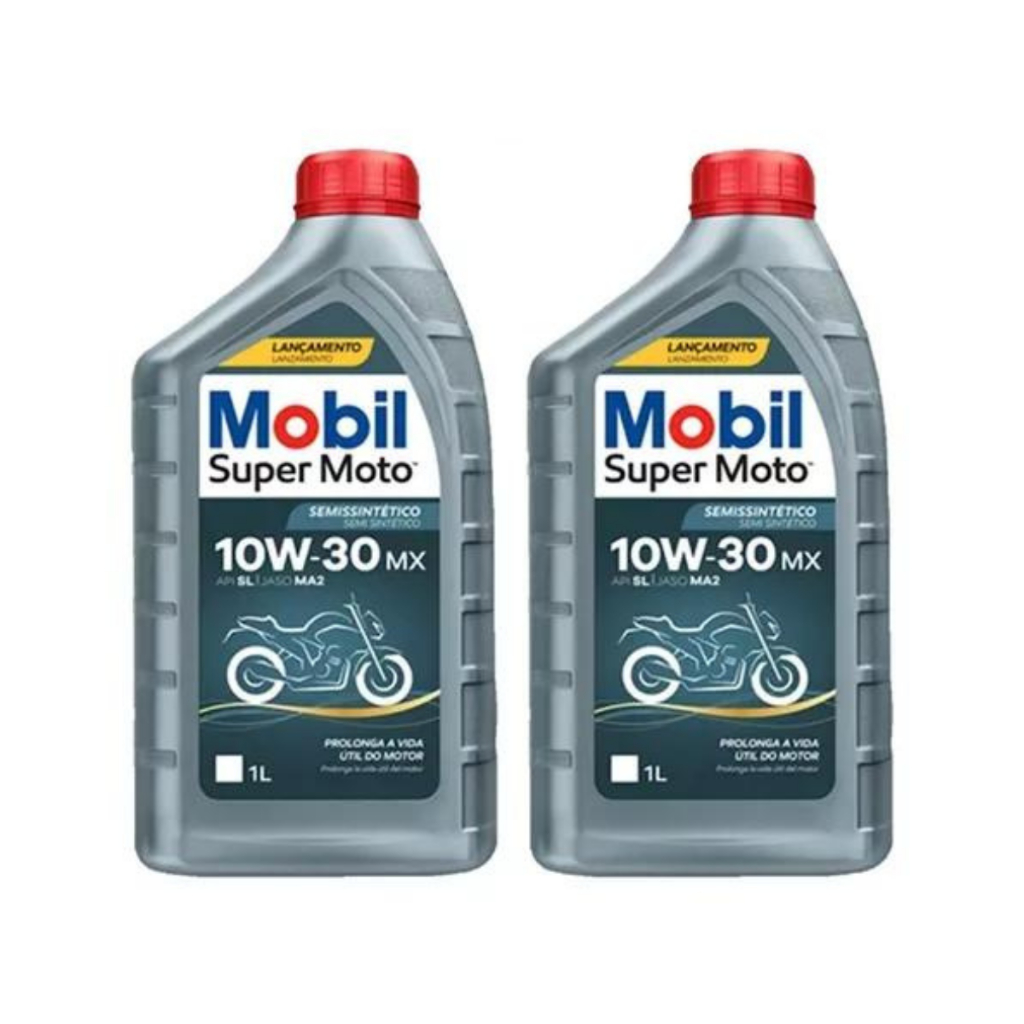 KIT 2 OLEO MOBIL 10W30 SUPOER MOTO MX ÓLEO LUBRIFICANTE SEMI SINTETICO MOTOS MOTOR 4 TEMPOS