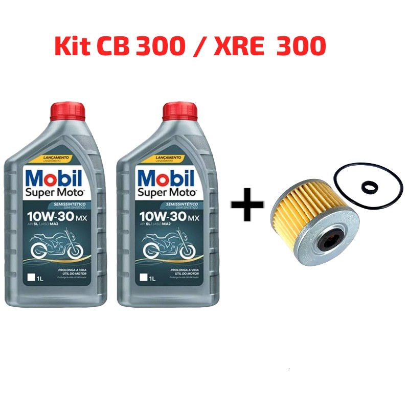 Kit Troca De Óleo CB 300 / XRE 300 - 2 Óleo mobil 10W30 Semissintético + Filtro de Óleo
