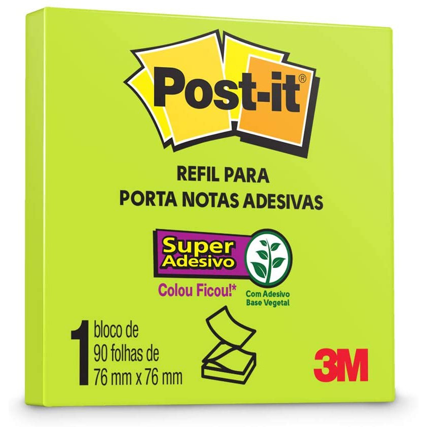 BLOCO DE NOTAS SUPER ADESIVAS POST-IT REFIL VERDE NEON 76 MM X 76 MM - 90 FOLHAS