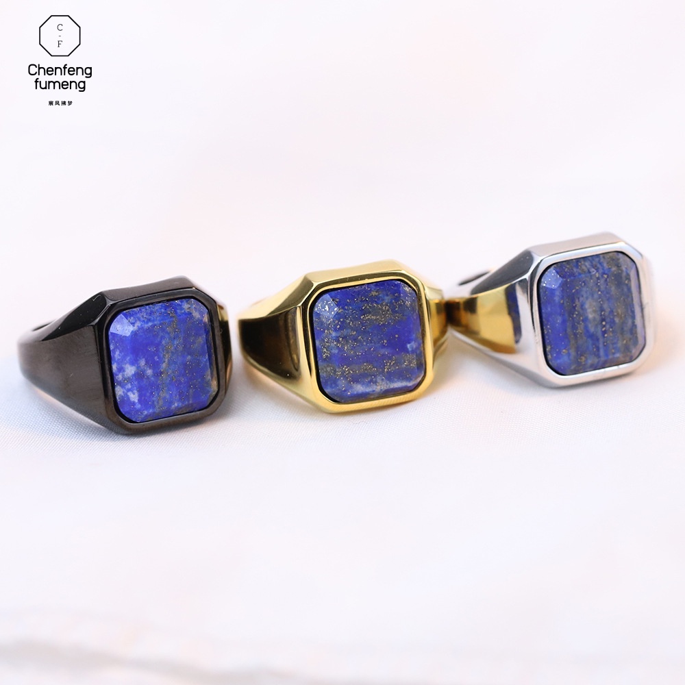 Chenfengfumeng Retro Grande Lápis Quadrado Lazúli Anéis De Pedra Para Moda Masculina Jóias De Aço Titânio MR47820