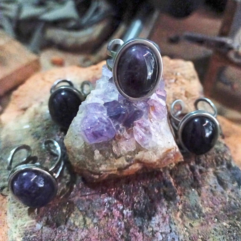 Anel Ajustável em Aço Cirúrgico com Pedras Naturais 12mm | Ágata Azul, Quartzo Rosa, Olho de Tigre e Ônix