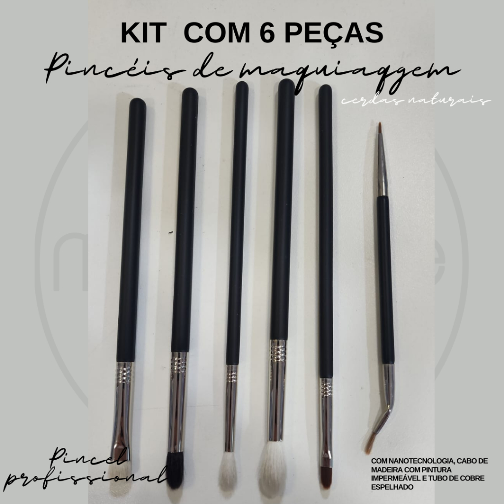 Kit de 6 pincéis de precisão e esfumar para maquiagem profissional com cerdas naturais - super promo