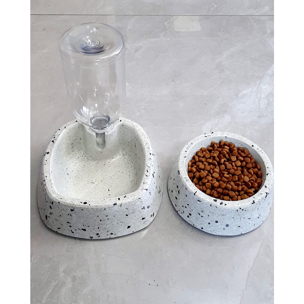Kit Comedouro 300gr com Bebedouro 500ml Branco para Pet feito em Pedra Granitina Promo