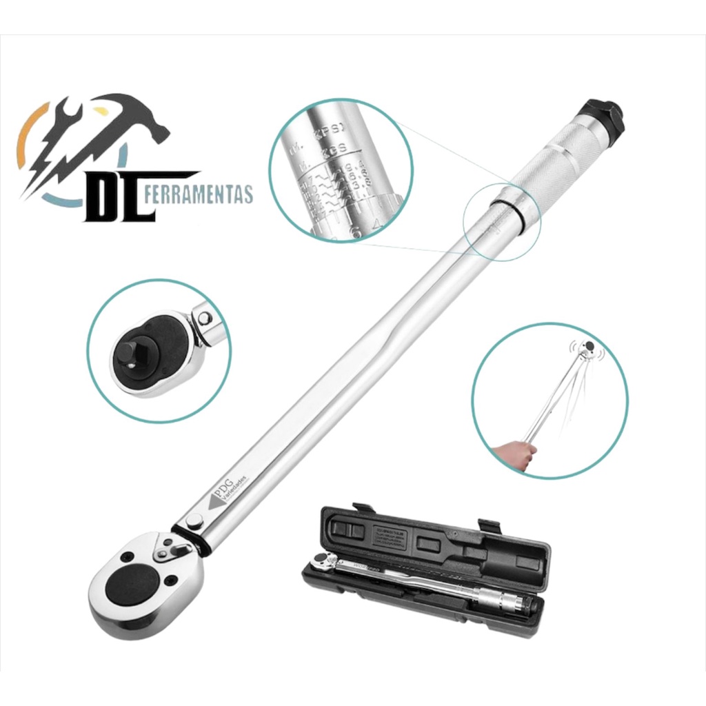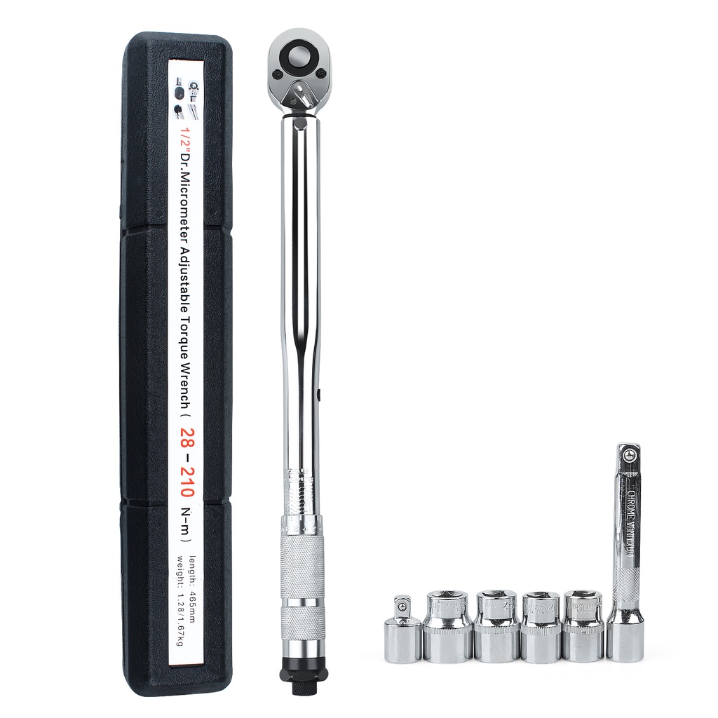 Torquimetro De Estalo 1/2 Pol 28 - 210nm Cr-mo Reversível Chave de Torque Kit Ferramenta Industrial Profissional
