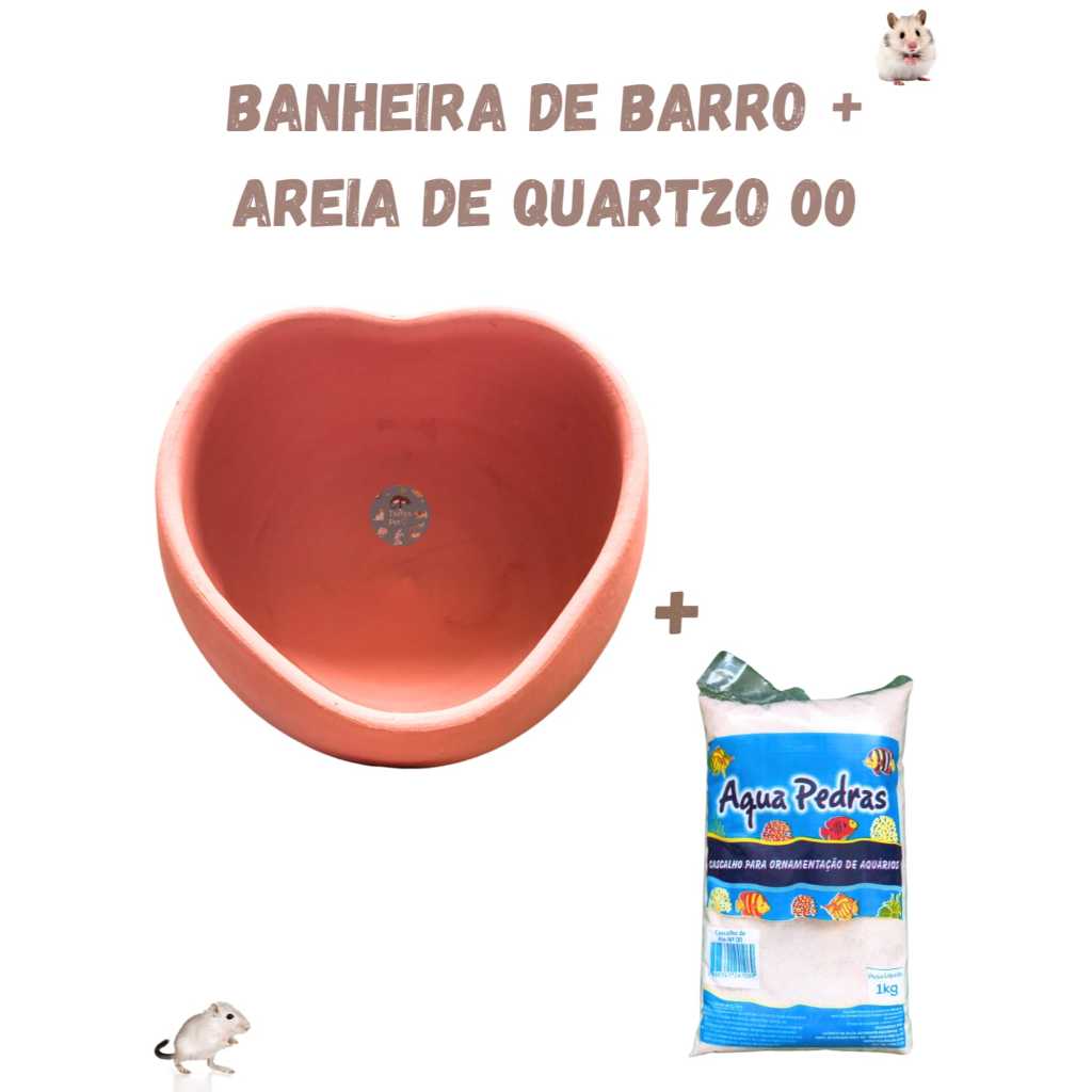 Kit Banheira de barro + Areia quartzo 00 para roedores, hamster, gerbil, banho, resfriamento
