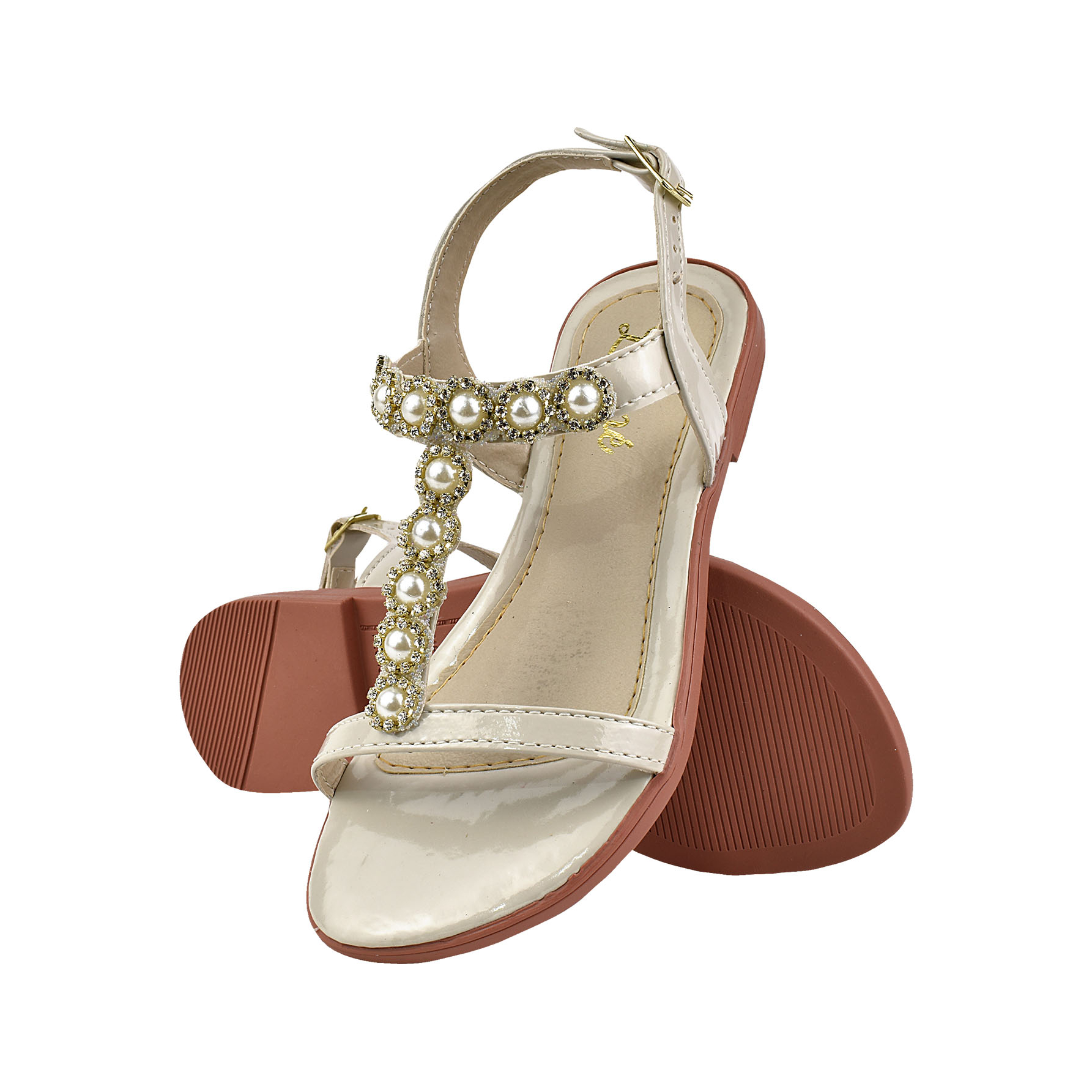 Sandália Feminina Infantil Rasteira Pedrarias Perolas Conforto Preço Baixo
