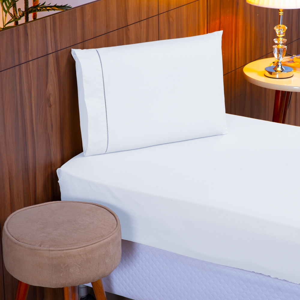 Jogo de Lençol Ponto Palito Solteiro 2 Peças 200 fios 100% Algodão