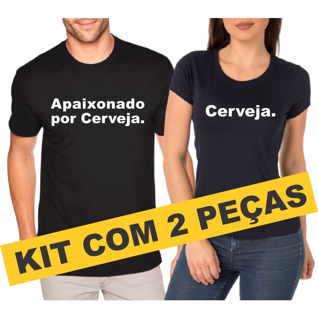 Camiseta Casal Apaixonado Por Cerveja Original Kit 2 Peças Preto Envio Imediato Camisa Casais