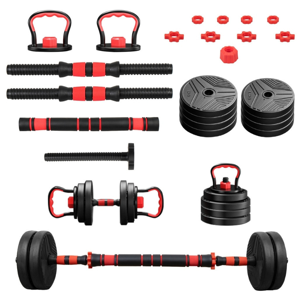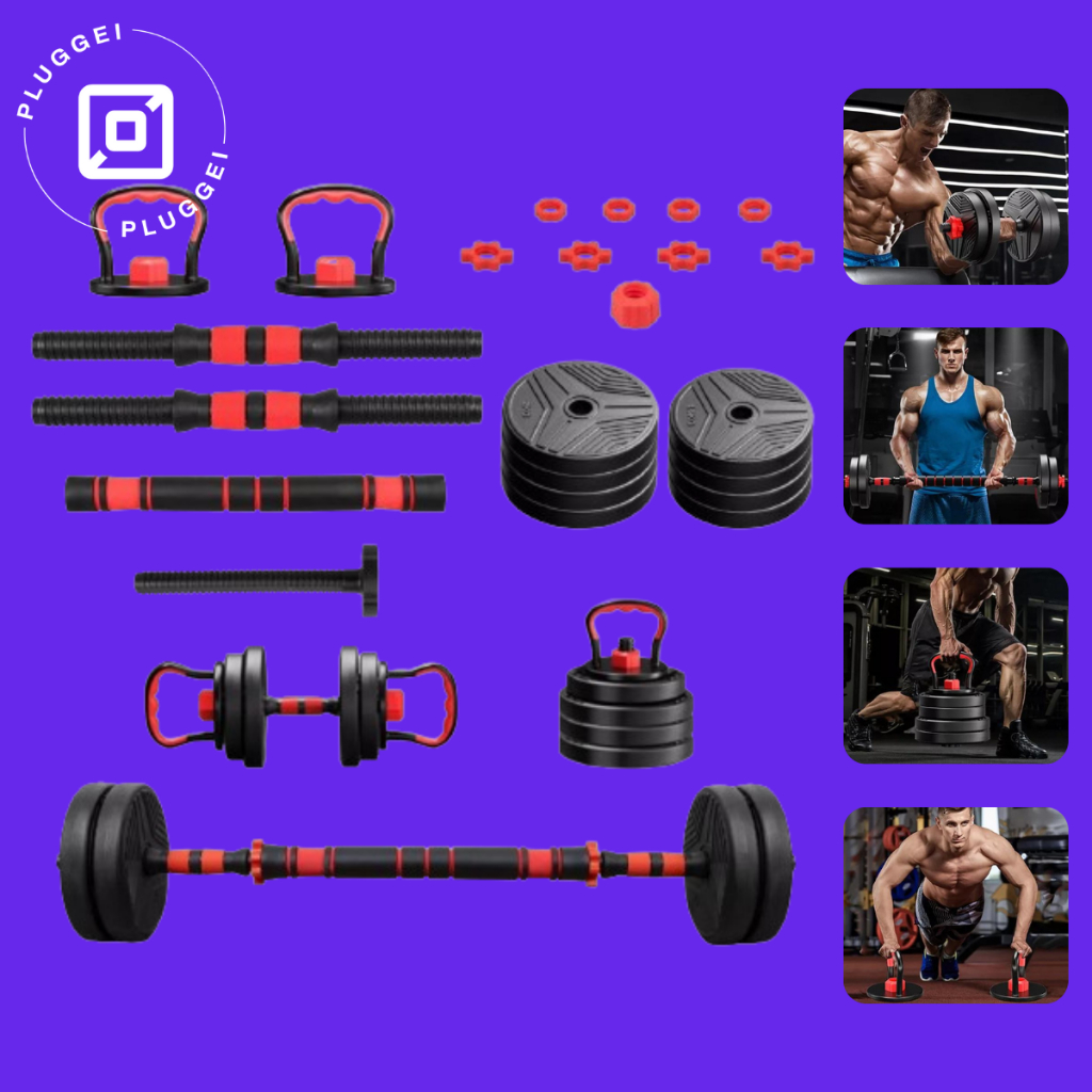 【15KG/30KG】Kit Halteres Barra Kettlebell Ajustável 6 em 1 Peso Musculação treino em casa