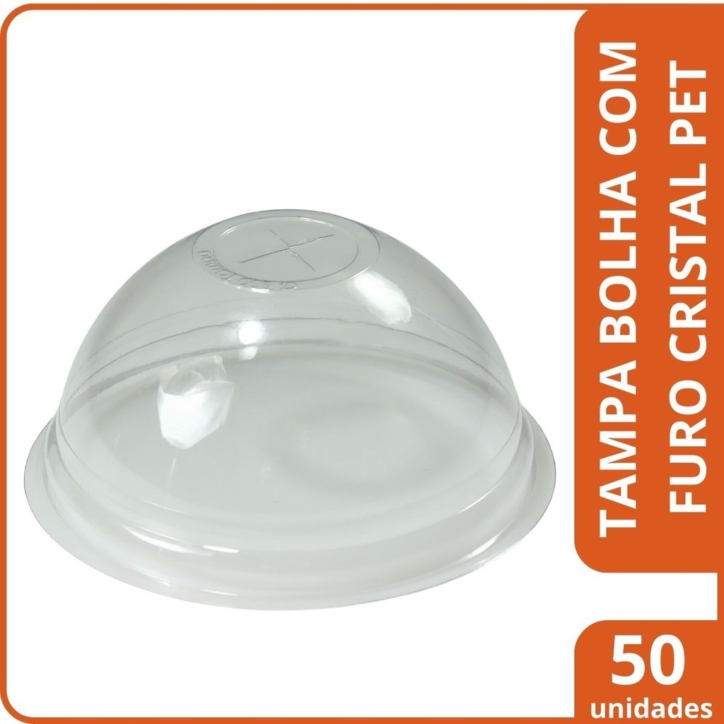 50 un Copo PP 500/550ml c/Tampa Bolha PET Sem Furo Domo Cristal Transparente Resistente