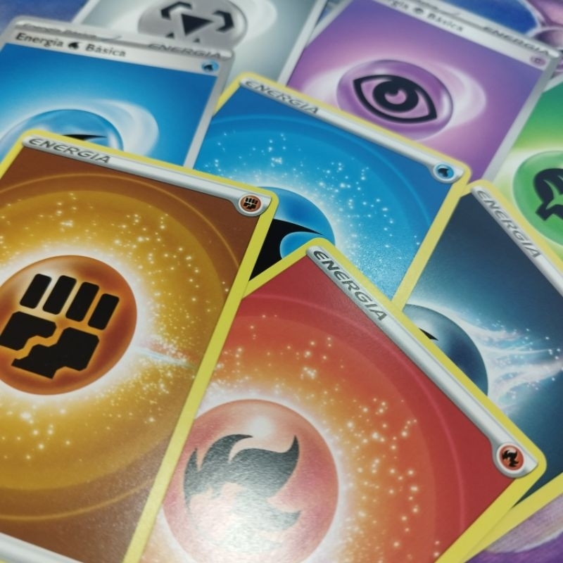 Lote com 100 cartas Pokémon de ENERGIAS de 8 tipos Originais
