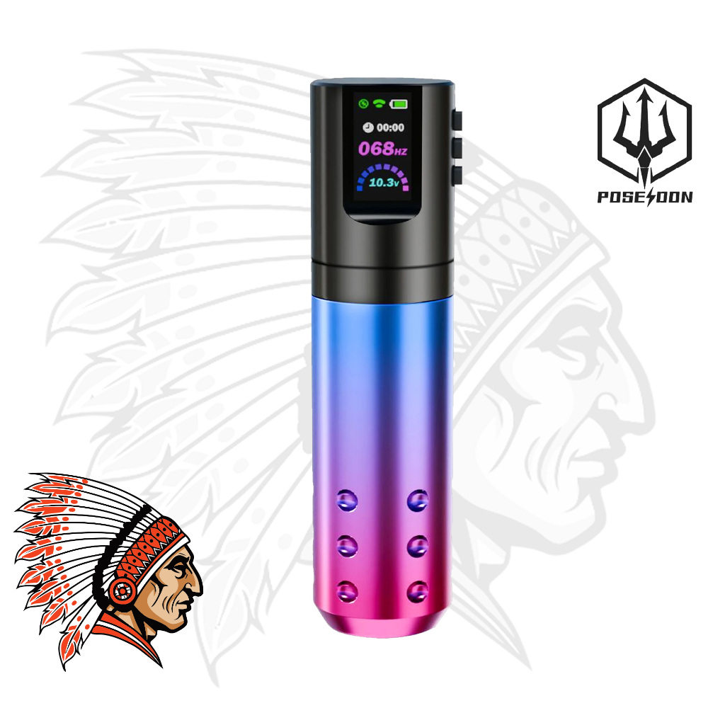 Maquina Pen Tattoo Poseidon Fury Set Curso Ajustável e Bateria Integrada
