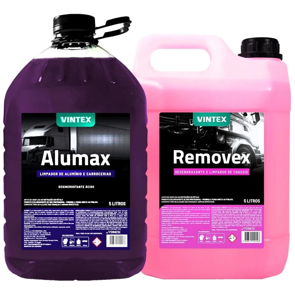 Alumax 1,5l + Removex 1,5l Vintex Vonixx Desengraxante e Desincrustante Limpa Carrocerias Alumínio